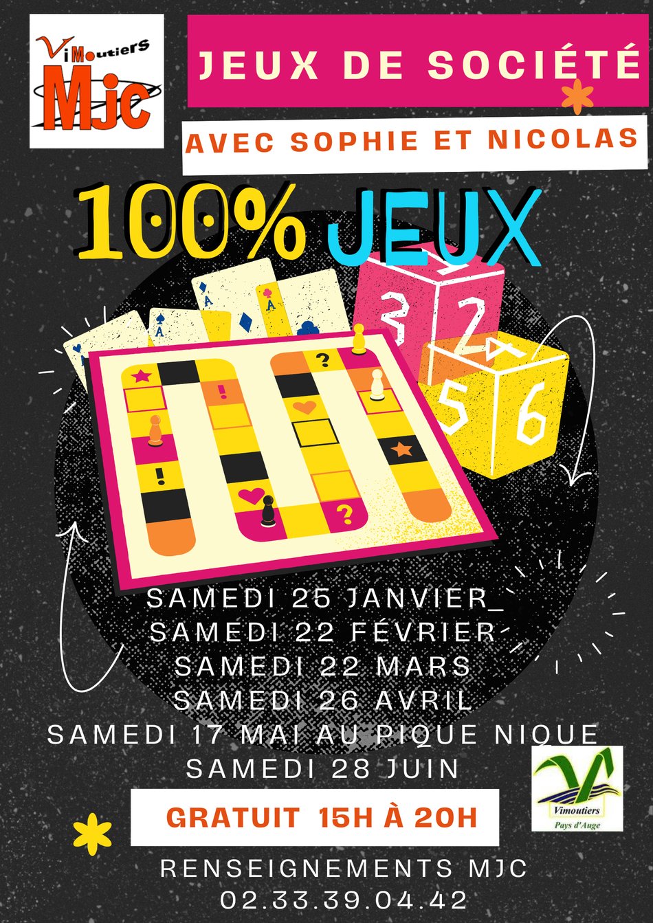 Sophie et Nicolas proposent un après-midi Jeux de société, de 15h à 20h, à la MJC.