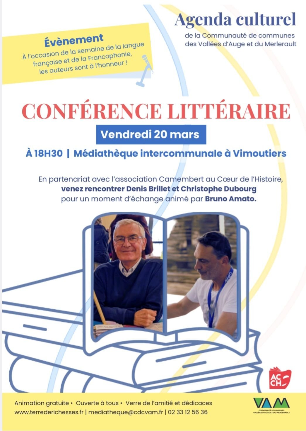 Vendredi 20 mars à 18 h 30 à la médiathèque de Vimoutiers, venez rencontrer deux auteurs : Denis Brillet et Christophe Dubourg .
